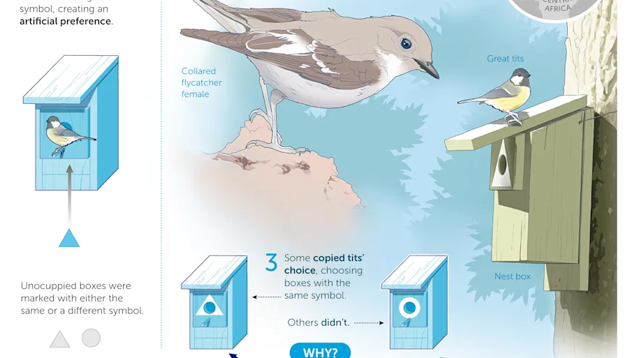 Researchers have shown for the first time in wild birds that the capacity to use information from competing species when choosing a nest site depend partly on individual cognitive ability. In the collared flycatcher, females that learned to solve a cognitive task faster were more likely to copy the nest site choices of great and blue tits, species that breed in the same area and forage on the same insects.
