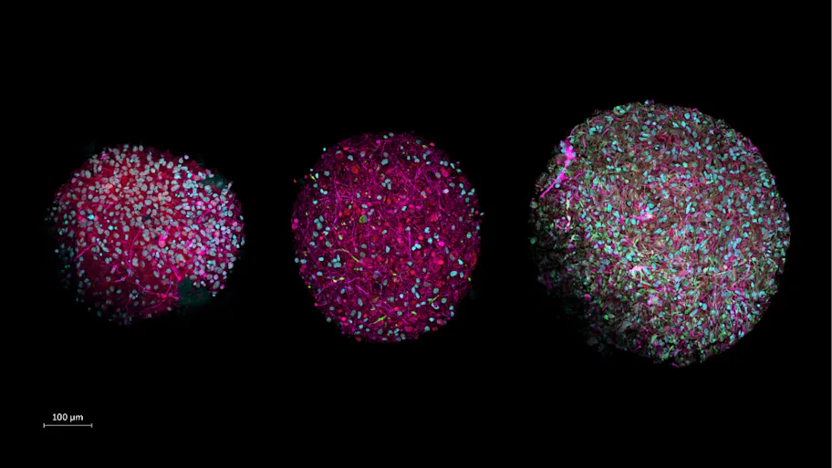 The scientists put their embryoid bodies into a special tank with a continuously stirring membrane, which contained a suitable medium for growing the organoids. They also manually cultured a control set of organoids on a conventional growth plate. The organoids spent four weeks in the tank, and were then analyzed using microscopy, immunofluorescence, immunohistochemistry, and RNA sequencing to see how the organoids had developed, what cells had formed, and how comparable they were to conventionally-grown organoids.